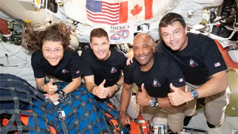 Artemis II, la misión histórica de la NASA que llevó a los astronautas Reid Wiseman, Victor Glover, Christina Koch y Jeremy Hansen a explorar el lado inédito de la Luna sobre la nave Orion en un viaje hacia el espacio profundo de 10 días, regresa al planeta Tierra HOY.