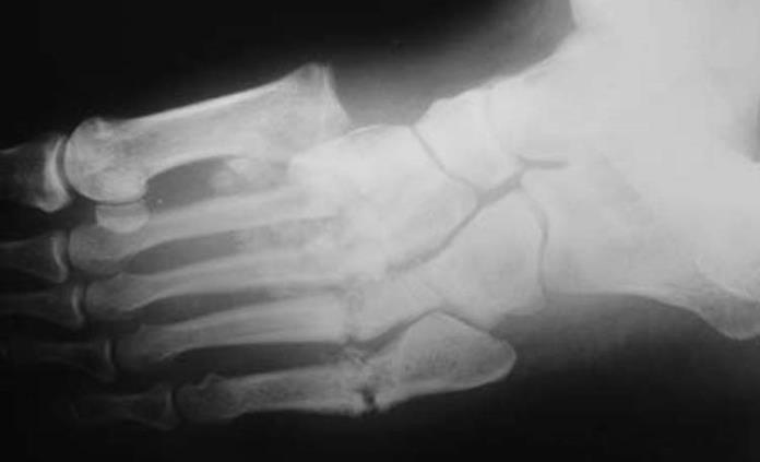 La articulación que se afecta con mayor frecuencia es la tarsometatarsiana, siendo bilateral en un 20 por ciento de los casos, además si el trastorno progresa con rapidez, la articulación se vuelve extremadamente dolorosa.