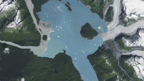 Con el paso del tiempo, el lago se ha expandido a medida que los glaciares se derriten. El lago Alsek es uno de los tres lagos ubicados junto a glaciares en la región que ha experimentado un crecimiento notable desde la década de 1980, afirmó Pelto.
