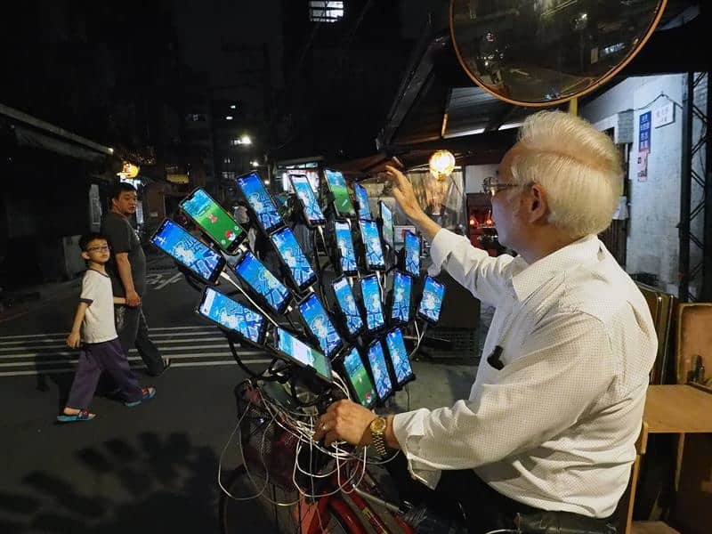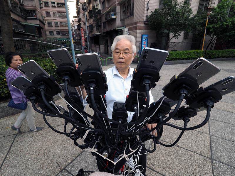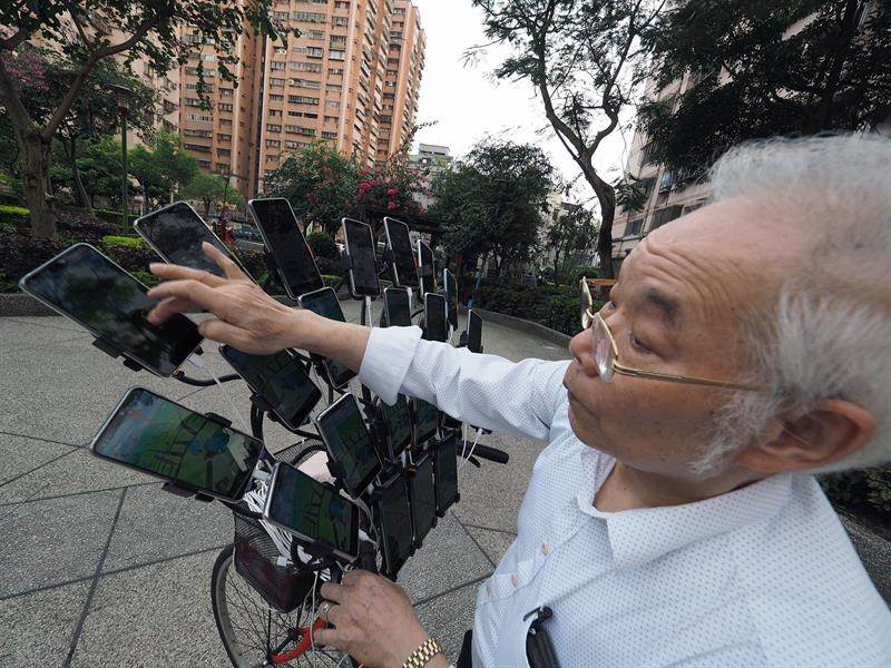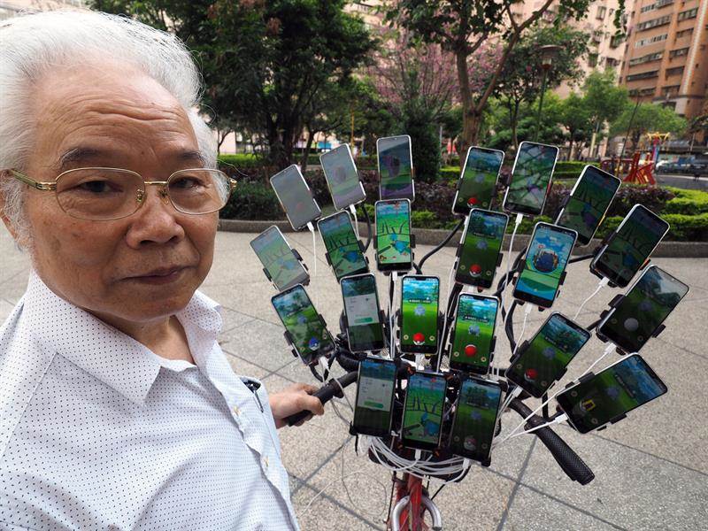 En la atareada isla de Taiwán, donde muchos empleados sólo saben a qué hora entran en su oficina pero no a la que saldrán, un singular abuelo de 70 años recorre diariamente decenas de kilómetros montado en su bicicleta y equipado con 24 teléfonos móviles para practicar su afición favorita: cazar Pokémon.