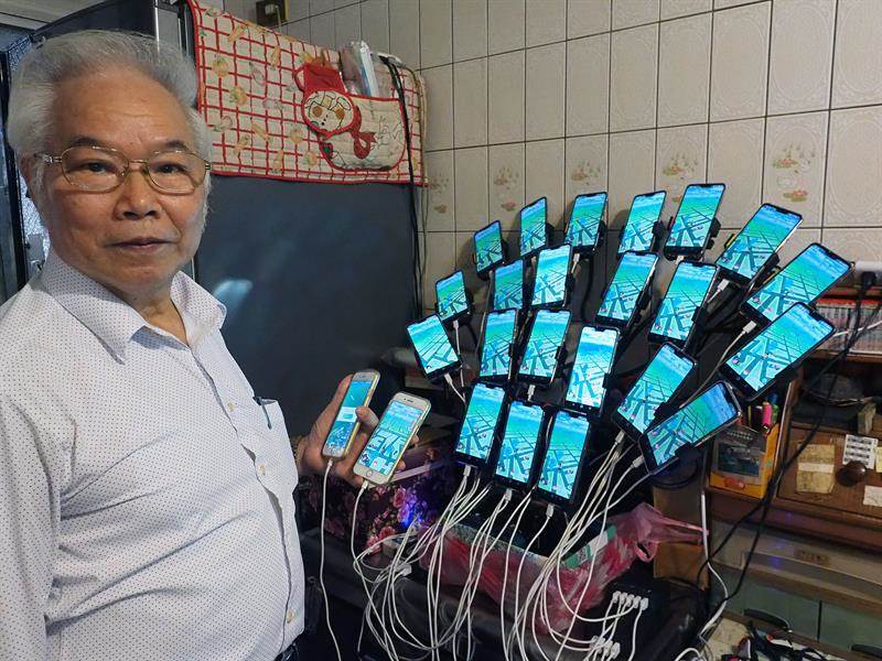 El abuelo taiwanés, saludado por la calle con el cariñoso apelativo de 'Tío Pokémon', dispone de más de 40 teléfonos móviles, con baterías para jugar más de 30 horas seguidas, y ha cazado más de 45 millones de criaturas.