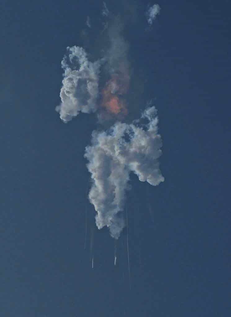 La nave tenía que haberse separado, pero Starship y Super Heavy estallaron todavía juntos tras comenzar a girar sin control durante unos segundos antes de convertirse en una bola de fuego.