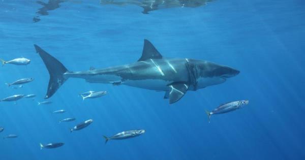 Considerado el pez depredador más grande del mundo, mide normalmente de 4.5 a 6 metros, aunque en Guadalupe se ha visto a la hembra Deep blue, de 6,5 metros, la cual es el ejemplar más grande que se ha filmado en la historia.