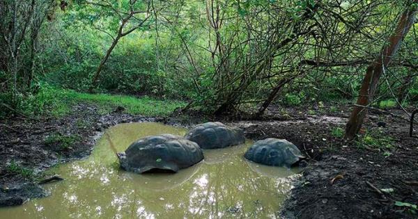 Las tortugas gigantes, que pueden vivir 200 años, alcanzan a mover hasta un kilogramo de lodo seco de una poza sobre sus caparazones: "Básicamente están siendo albañiles de sus propios ecosistemas", dijo Ellis Soto, estudiante de doctorado en biología de la universidad de Yale.