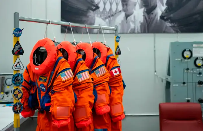 Los trajes que usarán los cuatro astronautas en el vuelo de prueba Artemis II son conocidos bajo el nombre de "Sistema de Supervivencia de la Tripulación Orion" (OCSS, por sus siglas en inglés) y son de color naranja brillante.