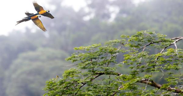 Al tercer día de excursión hacia el cuipo aparecieron, para sorpresa y alegría del grupo de indígenas e investigadores, tres parejas de guacamayas verdes. Todo un espectáculo, pues estas y las rojas son las más difícil de observar.