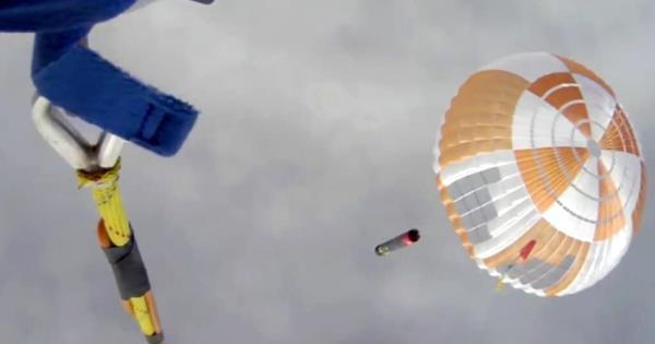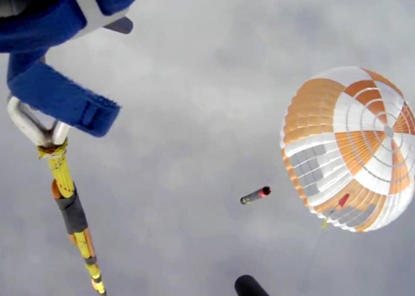 Recuperan con un helicóptero un cohete en su reentrada desde el espacio