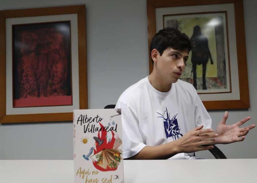 "Aquí no hay sed" fue escrito con algo de juego. Villarreal recreó momentos de su niñez y su juventud y contó con economía de palabras historias humanas, como la suya cuando fue a un mercado con su abuelo, compraron un cabrito con el que se encariñó, pero luego supo que su carne fue el plato principal en una cena familiar.