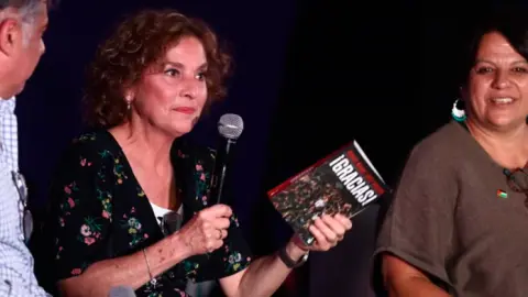 "Y luego una personita (López Obrador) que me regaló este que se llama ¡Gracias!, que lo manda, a ver quién se lo gana", dijo la escritora al organizar una dinámica.