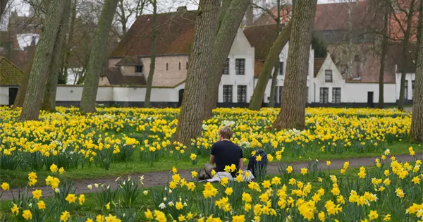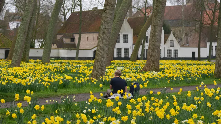 Enclavado en un mar de narcisos amarillos se encuentra un oasis de calma y tranquilidad fundado en 1245: el Beguinaje Principesco Ten Wijngaerde de Brujas.