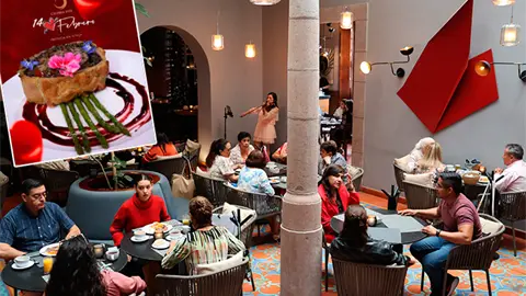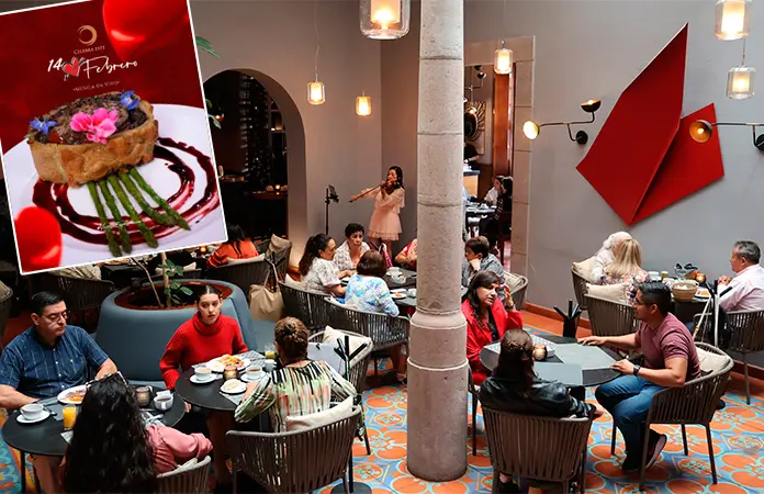 Por la noche, a las 21:00 horas, la velada será acompañada por música de saxofón, dando paso a una experiencia gastronómica única con sus exquisitos platillos, ideales para disfrutar de una noche romántica llena de música y sabor.