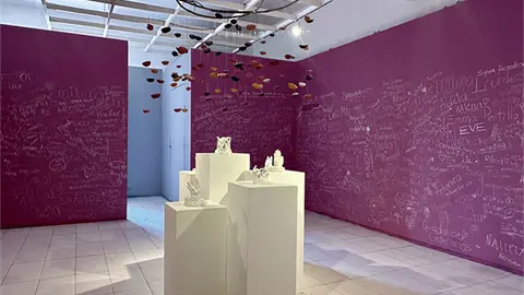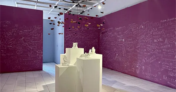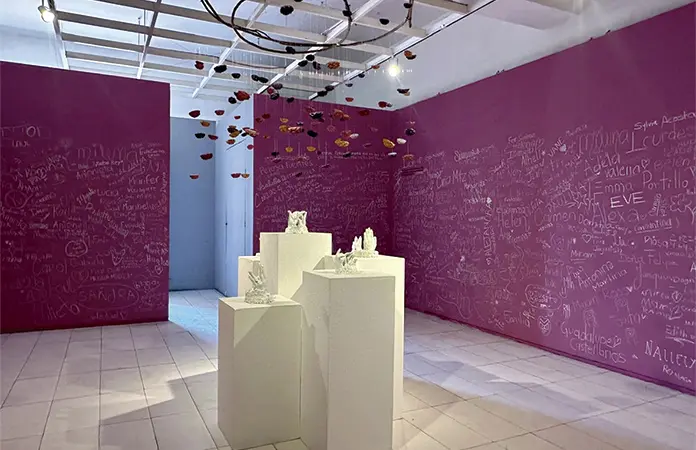 Desde la escultura participativa, Ivette Gasca abordará su práctica como un ejercicio colectivo que se activa desde el cuerpo y la memoria. En Luminaje, su instalación en el museo, el proceso se abre a otras mujeres y al público, quienes intervienen la obra al escribir nombres y dejar huellas. Para la artista, la escultura deja de ser un objeto aislado y se convierte en un espacio compartido donde el hacer implica acompañamiento, presencia y responsabilidad.