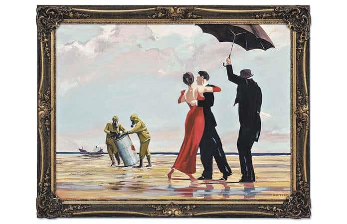 El cuadro es una reinterpretación de Banksy de la obra de Jack Vettriano ‘The Singing Butler’ (1992), que definió su carrera y que “no sólo se había convertido en una imagen icónica del canon artístico occidental, sino también en uno de los cuadros más célebres del Reino Unido”, explicó la casa.