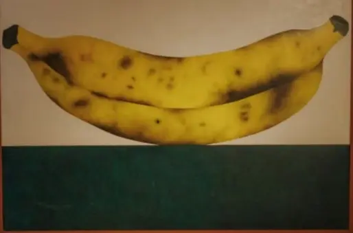 Los alimentos están presentes en obras como "Momento de plátano", de Antonio Henrique Amaral, que trata de una gran pintura sobre un par de plátanos magullados. Beto Díaz, curador de la colección Femsa, explica que este artista recurre al plátano como metáfora del cuerpo humano, en particular para mostrar los impactos que han tenido las dictaduras en países latinoamericanos.
