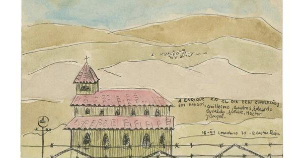 Fue dibujada con un bolígrafo negro por Jaime Imilán Álvarez, académico y secretario general de esta universidad, y forma parte de la exposición virtual "Dibujos en Prisión: memorias de encierro, compañerismo y resistencia", que se presentó esta semana de nuevo en Santiago y reúne los trabajos de 22 personas privadas de libertad en diversos centros de detención durante la dictadura de Augusto Pinochet (1973-1990).
