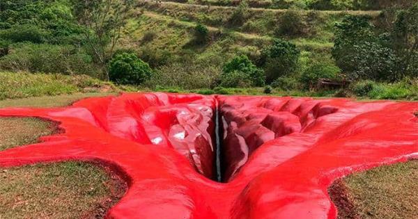Una vagina roja que abre la tierra, que es visible a distancia, que se refleja en el agua, que atrae a todos, es una obra de arte que ha provocado reconocimiento, críticas e intentos de censura en Brasil. Fue creada por la artista Jualiana Notari y en redes sociales ha causado mucho interés.