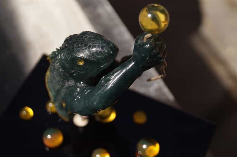 "Obtuve una medalla de oro en el de festival Suzhou China , categoría escultura en jade. La escultura lleva el nombre del trepador del cosmos que es la fusión de un humano y una iguana quien explora sus universos internos y externos, y es mi propia historia y fantasía", recordó.