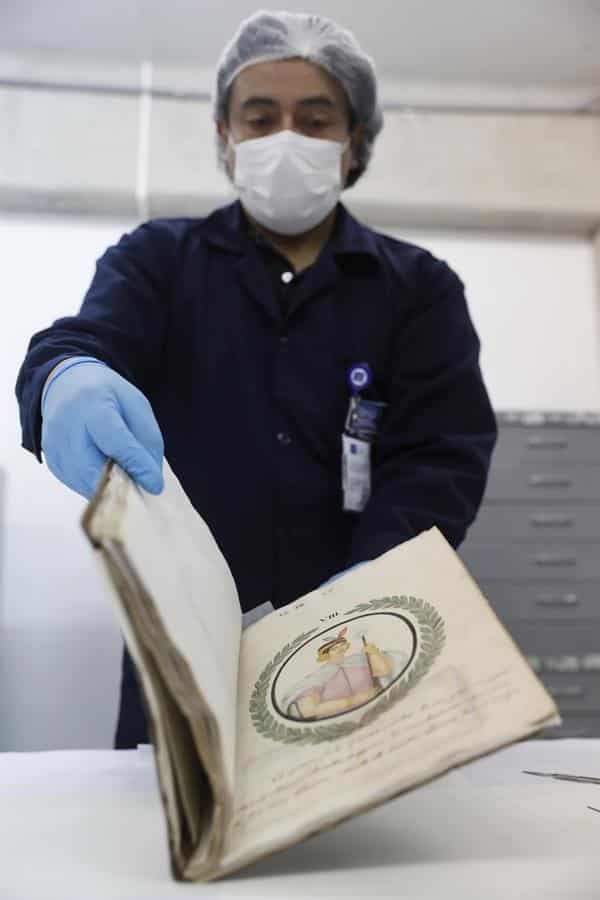 Entre las peculiaridades de su manuscrito, según explicó a Efe el historiador Gerardo Trillo, director de protección de colecciones de la BNP, está que "adjunta unas láminas que tienen color".