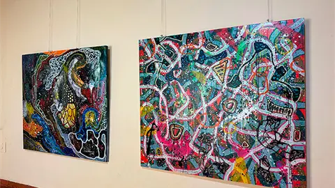 Cosmogonía orgánica se encuentra en el Centro Cultural Universitario Caja Real, la exposición pictórica de Emilio Salazar Touché, reúne una selección reciente de su producción abstracta y plantea un recorrido por su lenguaje visual consolidado dentro de la abstracción orgánica.