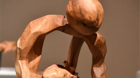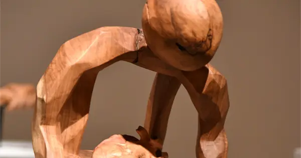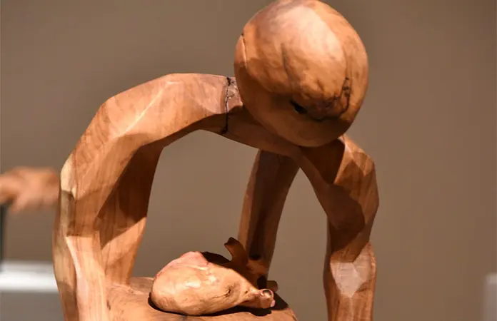 La exposición se compone de 15 piezas talladas en madera de mezquite, material que el autor recupera para otorgarle una segunda vida.