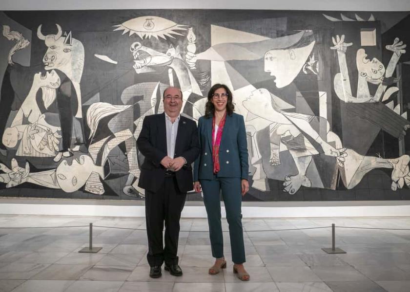 Frente al "Guernica", el icónico cuadro de Picasso que retrata los horrores de la guerra, los ministros de Cultura de Francia y España asistieron el lunes a una ceremonia en el Museo Reina Sofía de Madrid para conmemorar 50 años de la muerte del artista español que revolucionó el mundo de las artes.
