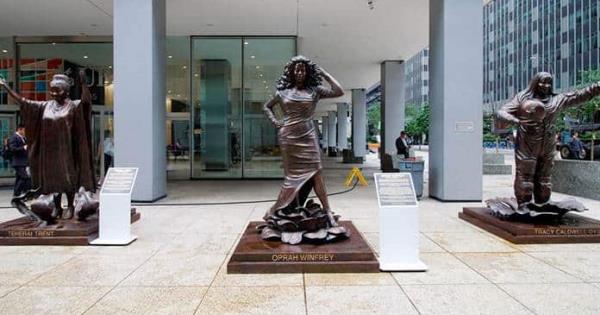“Las obras de arte públicas son una oportunidad para las ciudades y pueblos de mostrar su historia, diversidad y valores”, indican en un comunicado sobre las efigies, que se exhiben en un edificio cerca del icónico Rockerfeller Center.
