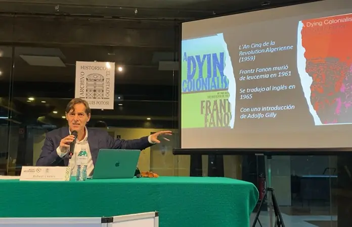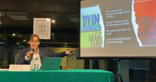 La conferencia también abordó la influencia del pensamiento de Frantz Fanon en Gilly, especialmente en su reflexión sobre la violencia colonial y anticolonial. Curley destacó que Gilly leyó y reseñó tempranamente Los condenados de la tierra, encontrando en esa obra una clave para analizar la violencia como parte de los procesos históricos de liberación y no solo como un fenómeno aislado.