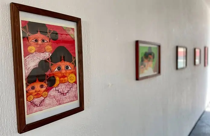La muestra reúne una serie de obras que retratan personajes indígenas de la Huasteca potosina, especialmente del pueblo Teenek.