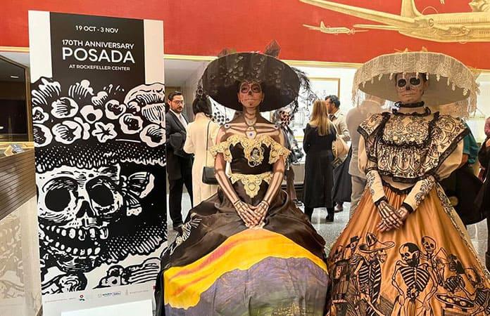 Las calaveras del grabador mexicano José Guadalupe Posada llegaron este miércoles al Rockefeller Center de Nueva York, donde protagonizan una exposición en memoria del 170 aniversario del artista que estará abierta al público hasta el 2 de noviembre, cuando se celebra el tradicional Día de Muertos.