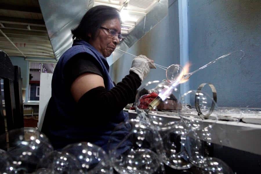 En Chignahuapan se fabrican estas esferas desde hace más de 100 años, en un negocio que es todavía familiar en gran medida.