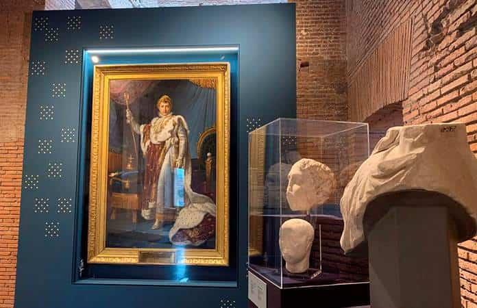 Entre las piezas expuestas en los Mercados de Trajano se encuentran esculturas de Antonio Canova, así como otros bustos del emperador francés y de personajes clásicos, copias de conocidos retratos -como "Napoleón cruzando los Alpes", de Jacques-Louis David- o el original "Napoleón con su hábito de coronación", de François Gérard.