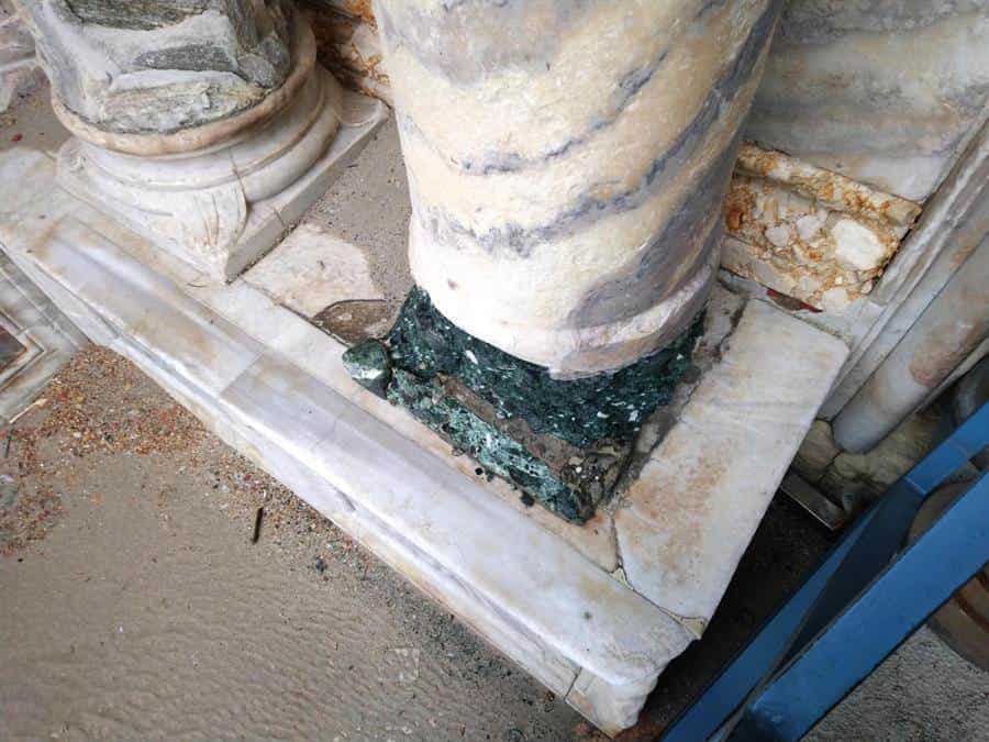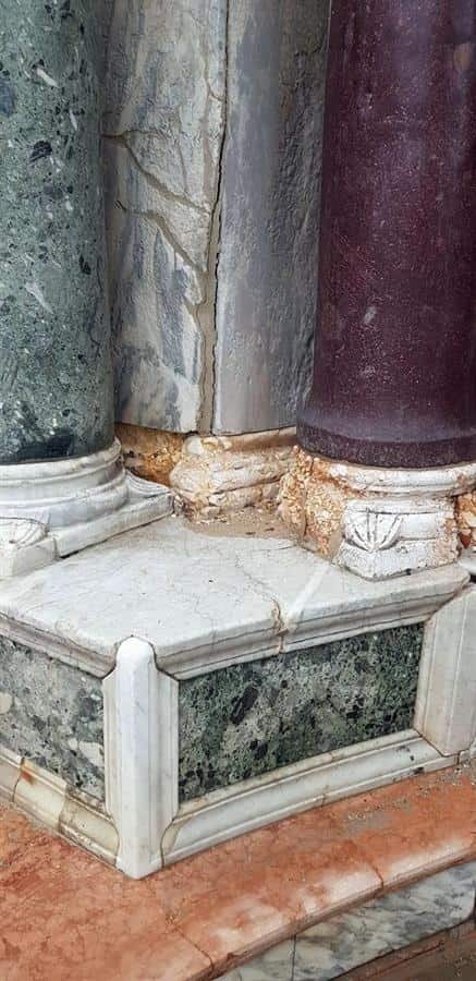 También se ha hecho público el estado de las bases de algunas columnas, gravemente perjudicadas, y sobre las que el procurador ha asegurado que se tendrán que sustituir por la imposibilidad de recuperar el mármol para restaurarlas.