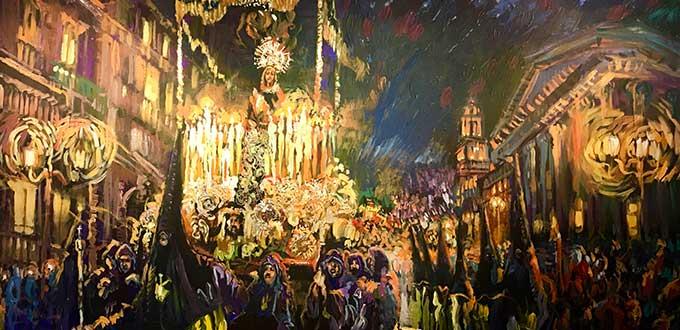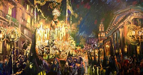 La Procesión del Silencio, es reinterpretada en una obra de gran formato titulada “Luces del silencio”, una pieza realizada en lienzo con técnica mixta por el pintor y arquitecto potosino Ricardo de la Torre, quien con este cuadro da la bienvenida al público a la exposición pictórica “Momentos de Luz”, en la Galería Lupe Vélez del Centro Cultural Palacio Municipal.