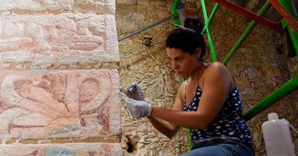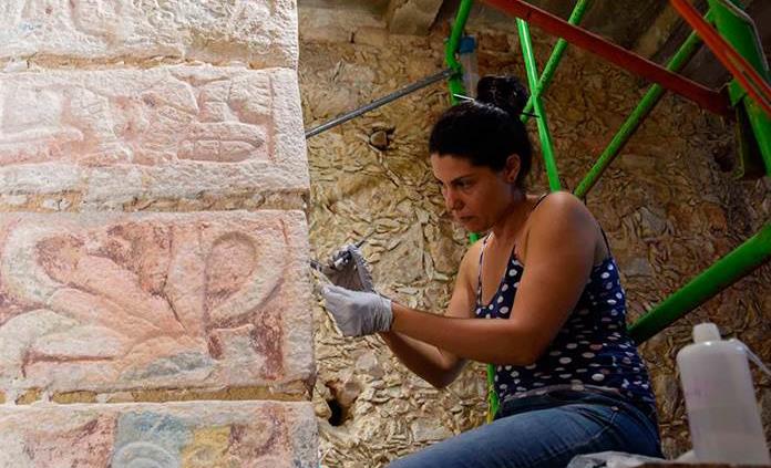 La relevancia de los trabajos que realiza la doctora del Centro INAH Yucatán radica en que "todo es original". El sitio muestra la técnica que usaron los mayas en piedras de cantera suaves y homogéneas, lo que les permitió labrar, lechar con cal y pintar con pigmentos naturales, como óxido de hierro.