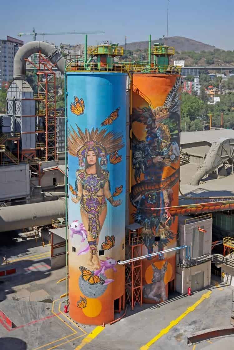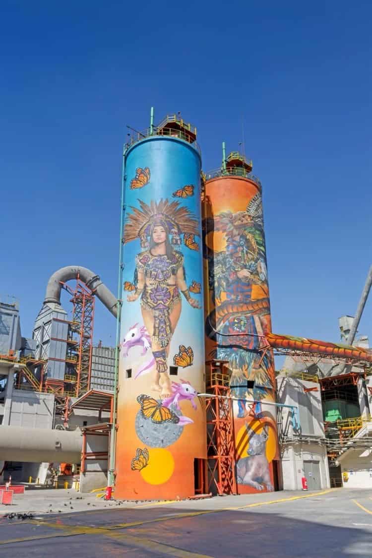 En la Planta Barrientos de Cemex, dos imponentes silos se transformaron en un vibrante lienzo de color y vida gracias a un majestuoso mural creado por los propios trabajadores de la empresa, bajo la dirección de un destacado artista y su equipo.