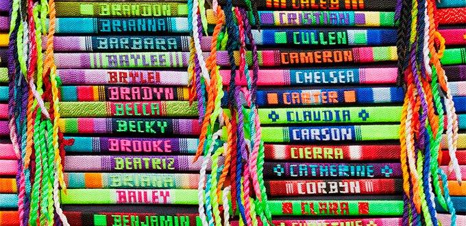 Las personas puedes elegir su nombre entre las pulseras que están exhibidas, pero en caso de no encontrarlo, el oaxaqueño, originario de la Sierra Juárez, comienza a mover sus manos para tejer el pedido, en el que invierte entre 10 y 15 minutos.