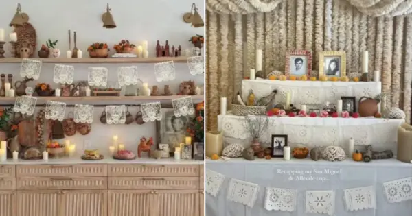 Las ofrendas aesthetic o estéticas son versiones de la clásica ofrenda mexicana de Día de Muertos en las que se incorporan variaciones de los elementos tradicionales, como "papel picado" blanco o beige.