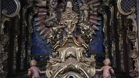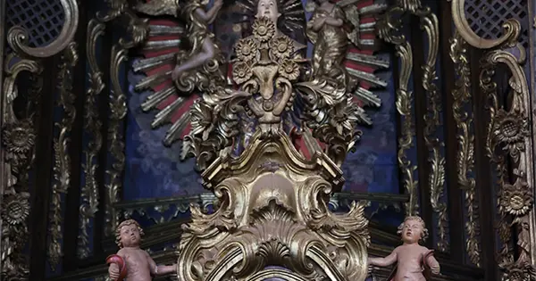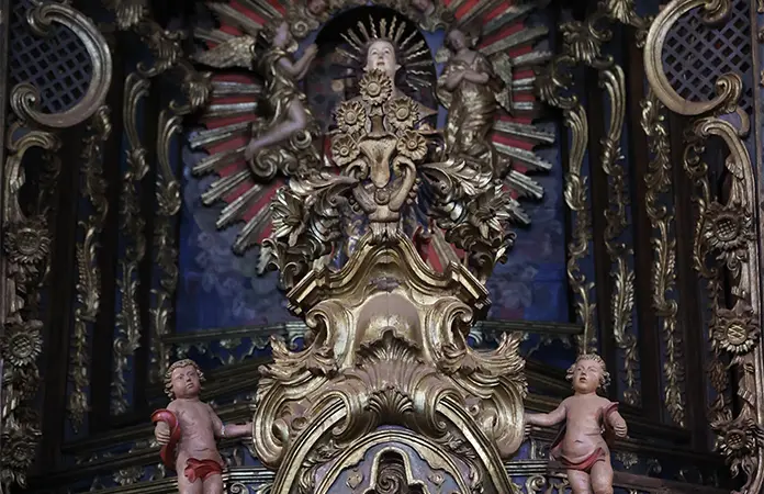 Al atravesar las puertas del templo, el visitante se encuentra con deslumbrantes tallas de madera hechas a mano por indígenas guaraníes, entre 1755 y 1772, con la dirección de religiosos franciscanos y el diseño del maestro escultor portugués José de Sousa Cavadas.