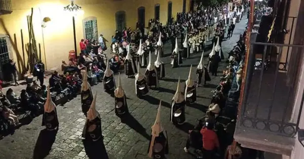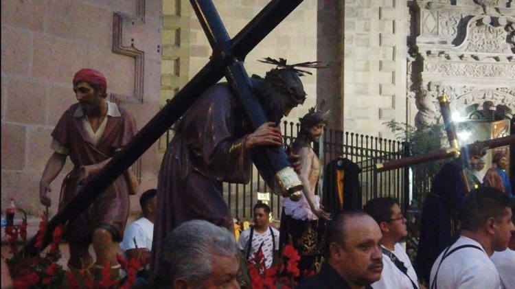 La noche del Viernes Santo avanza lentamente, las calles del centro histórico de San Luis Potosí que marcan la ruta procesional enmudecen ante el paso solemne de las andas, mientras cientos de ojos se humedecen y los hombros de los costaleros se endurecen por la carga.