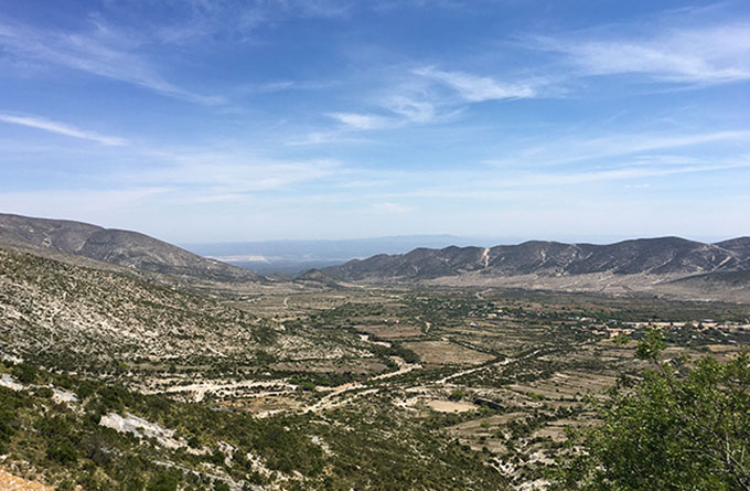 A bordo de sus automóviles o autobuses de pasajeros, las personas deben recorrer un camino empedrado de unos 26 kilómetros que va subiendo la sierra del mismo nombre del pueblo, pasando por varios ejidos como El Potrero y La Luz, en medio de un paisaje totalmente desértico.