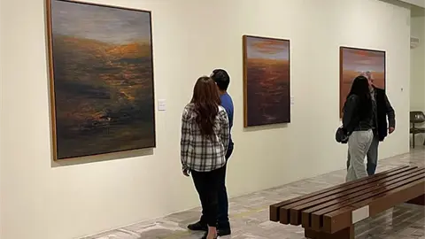 La charla permitirá revisar las quince piezas que integran la muestra, obras en mediano y gran formato construidas a partir de la observación del paisaje potosino. Robles explicó que su trabajo surge de recorridos por el desierto, donde registra luces, sombras y estructuras naturales que luego transforma en composiciones que no buscan una copia literal del entorno, sino un acercamiento a sus formas y ritmos.