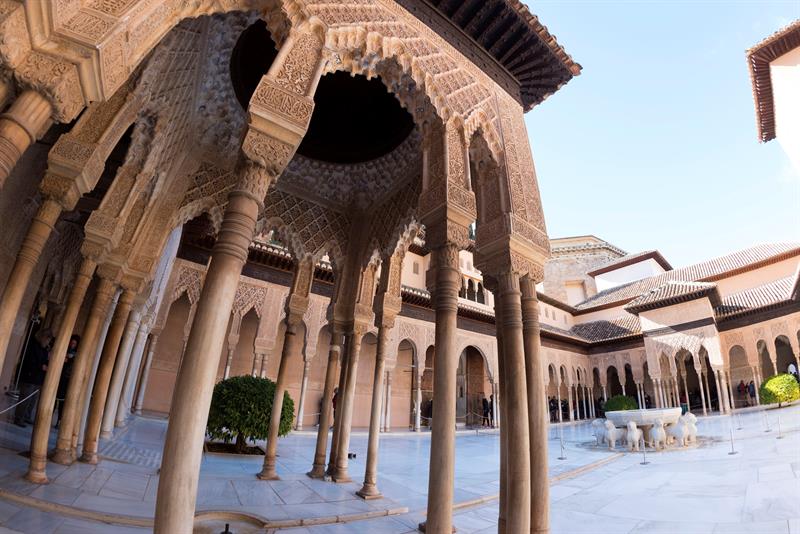 El Patio de los Leones, uno de los emblemas de la Alhambra, en la ciudad española de Granada (sur) está flanqueado por dos templetes de pequeñas dimensiones, que se han convertido con el paso de los siglos en los dos únicos con cúpula semiesférica ataujerada que existen.