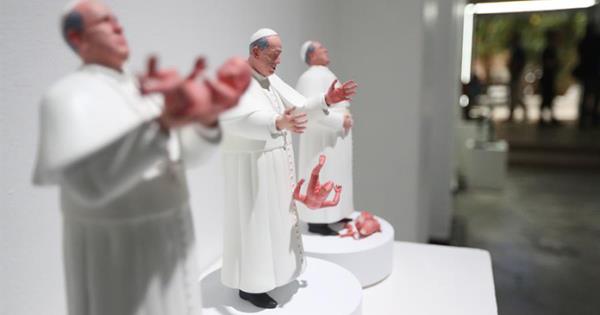 Una escultura del papa Francisco tirando a un bebé causa polémica