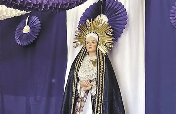 La exposición se articula en torno a las siete estaciones del Vía Matris: la Profecía de Simeón, la Huida a Egipto, el Encuentro con Jesús camino al Calvario, la Crucifixión, el Descendimiento, la Sepultura de Jesús y la Soledad de María. Esta práctica de meditación, ligada a la liturgia de Cuaresma, ha sido representada a lo largo del tiempo en distintos soportes visuales y se reza especialmente durante el Viernes de Dolores.
