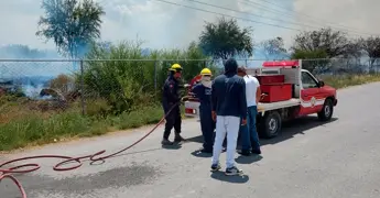 Matehuala.- Elementos del Cuerpo de Bomberos acudieron a rescatar un perro que estaba atorado en una reja de una viviend...