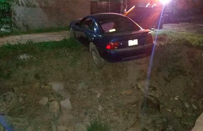 Al llegar, encontraron un vehículo Ford Mustang color azul, varado, al borde de un arroyo. Su conductor se encontraba ileso, pero no pudo mover la unidad, ya que corría el riesgo de que el vehículo se fuera al arroyo.