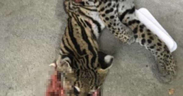 CIUDAD VALLES.- Desconocidos abandonaron un ocelote (Leopardus pardalis) cerca del Cobach 24, en la avenida Ejército Mexicano, cerca de la galera que se encuentra frente a la institución educativa. El felino estaba atropellado, porque parte de sus vísceras estaban de fuera, pero personal de Protección Civil observó que tenía un orificio de bala.