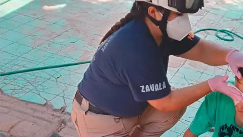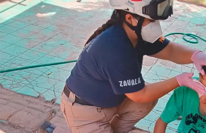 Al lugar acudieron paramédicos de Protección Civil Municipal quienes le brindaron los primeros auxilios, debido a las lesiones que sufrió al caerle el ácido en su cara.