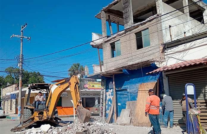 El inmueble que se caía a pedazos todavía hacía unos meses, fue destruido en parte por Protección Civil de sus cornisas y de sus salientes porque se caían solas, dado lo vetusto del edificio.