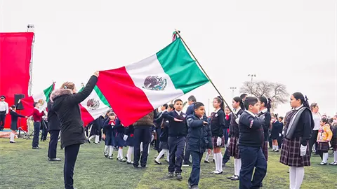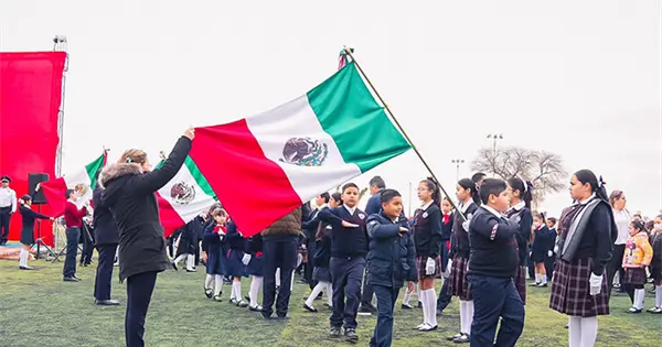 El escudo nacional se basa en la leyenda azteca de la fundación de Tenochtitlán donde el águila devora a una serpiente representando la victoria y los orígenes prehispánicos, y como ya es tradición el Día de la Bandera se le toma el juramento a la bandera a los niños y niñas de tercer grado de primaria.